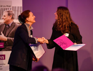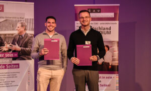 Die CAU vergibt mit dem Deutschlandstipendiumprogramm nicht nur Stipendien, sondern schafft auch ein Stück gelebte Gemeinschaft – engagiert, inspirierend und mit viel Zukunftsgeist. Der Festakt mit der feierlichen Urkundenübergabe an Stipendiat:innen und Stifter:innen ist der Auftakt persönlicher Begegnungen – der Moment, in dem Förderung ein Gesicht bekommt und aus Unterstützung echte Verbindung entsteht. Hier lernen sich Fördernde und Geförderte erstmals kennen, kommen ins Gespräch und legen den Grundstein für Austausch, Einblicke und gemeinsame Perspektiven. Die Vergabefeier ist damit ein zentraler Bestandteil unserer Deutschlandstipendien-Gemeinschaft an der CAU Kiel. In Kürze finden Sie auf dieser Seite das Programm und den Ablaufplan der kommenden Vergabefeier.